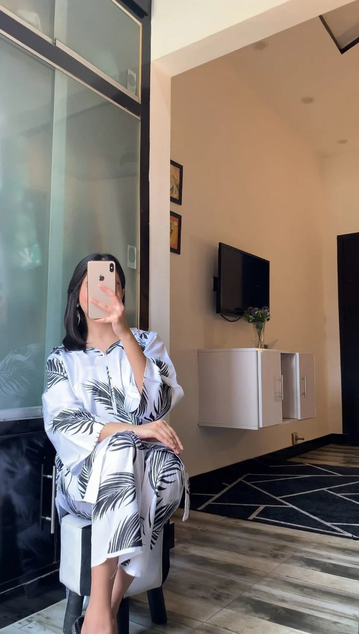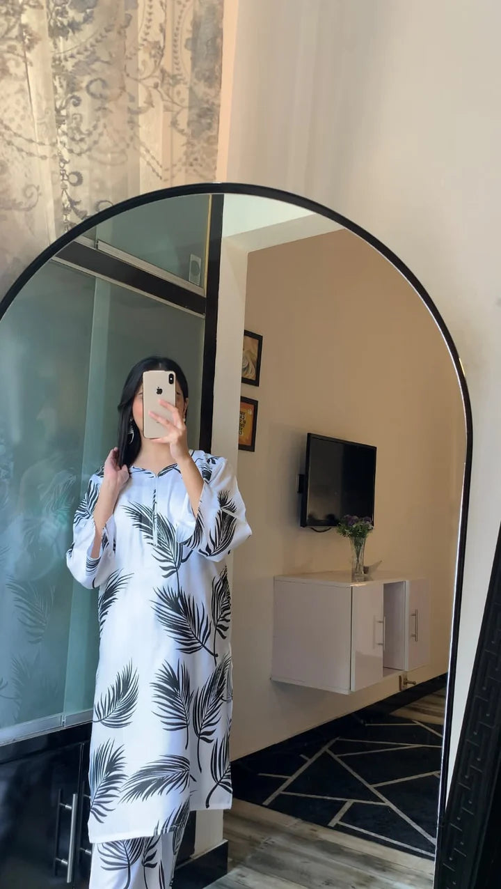 Introducing our new Shirt with Big Leaf - the perfect option for those who want to make a statement with their fashion choices. Made from high-quality materials, this dress and trouser set provides both style and comfort. The bold leaf pattern adds a touch of nature-inspired elegance to your wardrobe. Enhance your look with this unique and trendy outfit.
